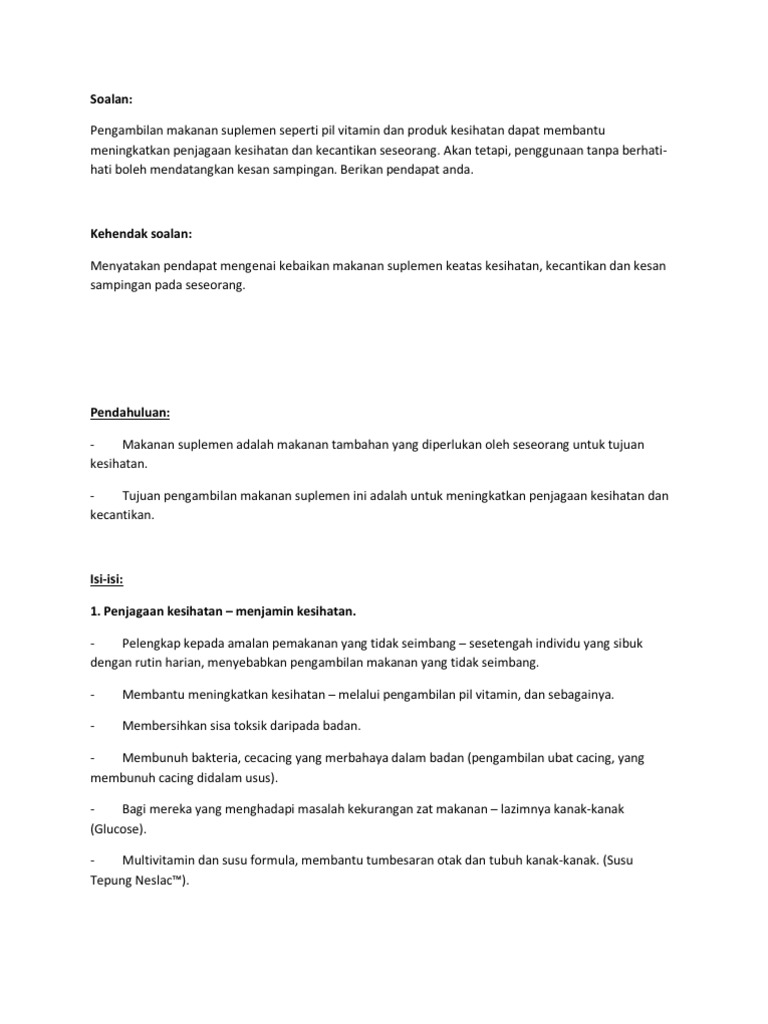 Esei Kebaikan Dan Keburukan Makanan Suplemen Pdf